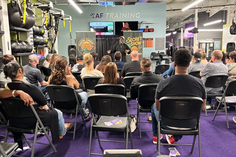 The Secret Show's are Coastal Comedy Krew's Exclusive Comedy Events. What makes them soooo Secret??? Well you don't know where we will be located until 4 hours before showtime. Yep, I'm asking you to buy a ticket to a show, without knowing where it's going to be at!!! All I have for you is the Date, Time and City. Then 4 hours before the mics go hot you receive an email and text with the full location of the show.